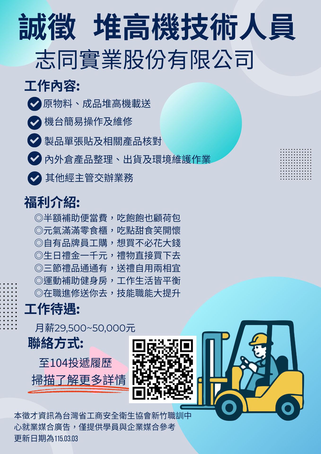 ✨誠徵~堆高機技術人員/志同實業股份有限公司