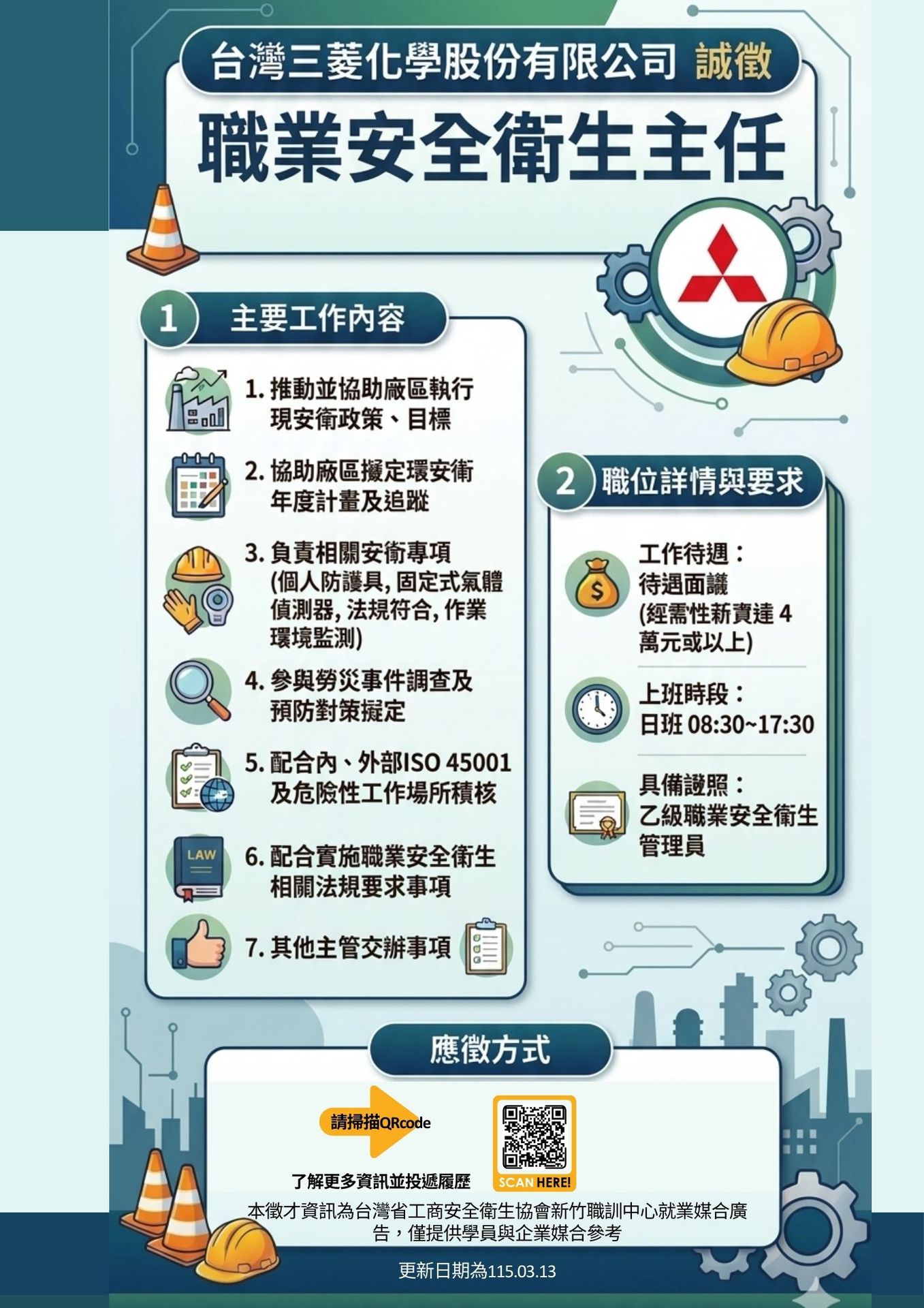 ✨誠徵~職業安全衛生主任/台灣三菱化學股份有限公司